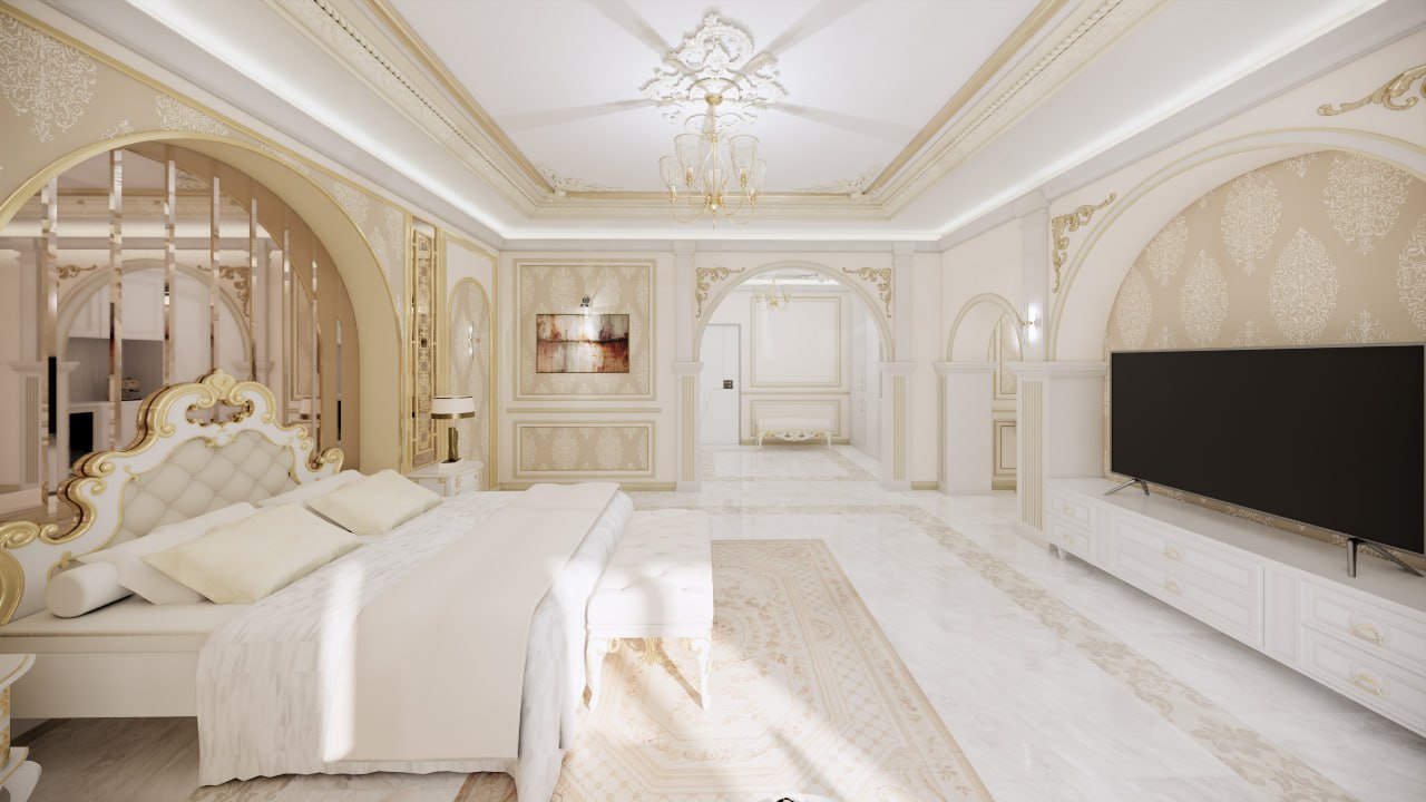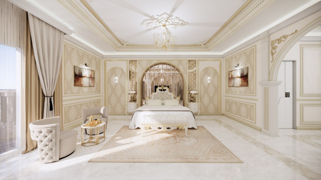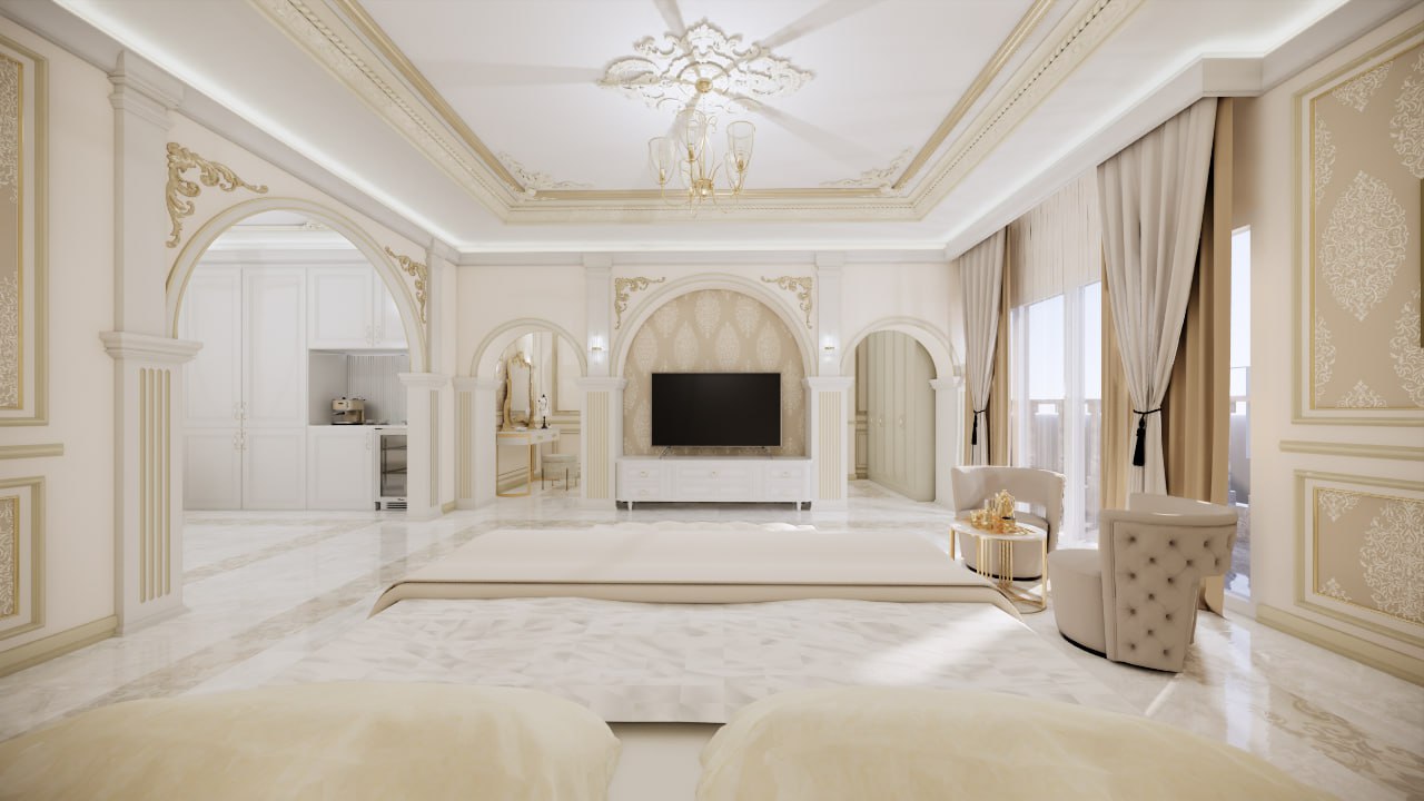 The VIP Classic Rooms reinterpret Arab luxury through warm gold detailing, handcrafted classical motifs, and a soft, immersive lighting strategy. Every element—headboards, furniture, lighting, rugs, and accessories—has been fully custom-designed and produced by TTL to create a cohesive and expressive environment.